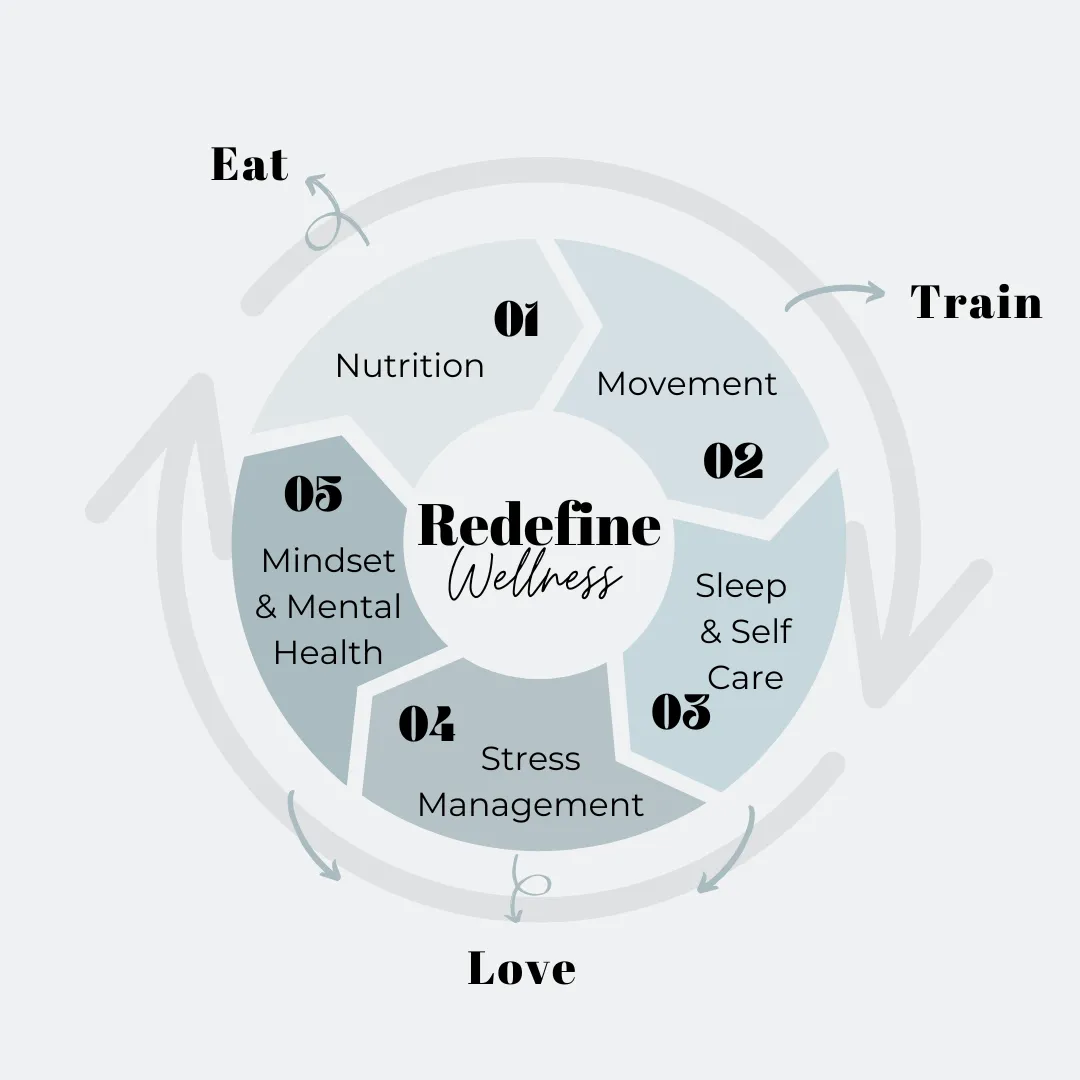 Redefine Wellness® is built on a 360° method that integrates nutrition, training, sleep, mindset, and healthy living. Instead of focusing on just one piece (like food or workouts), we connect all the dots. Plus, you’ll get personalization, group accountability, and practical tools designed by qualified practitioners and subject matter experts—without the premium price tag of 1:1 coaching.